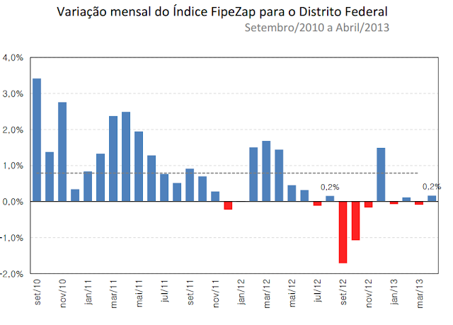 O mercado imobiliário em Brasília atravessa um período de estabilidade - o que é ótimo para os compradores, que, assim, podem escolher seus imóveis com tranquilidade. Entretanto, a variação de 0,2% em abril foi a maior do ano, revertendo variações negativas, o que pode indicar o início de um processo de valorização - algo que somente poderá ser confirmado ao longo dos próximos meses.